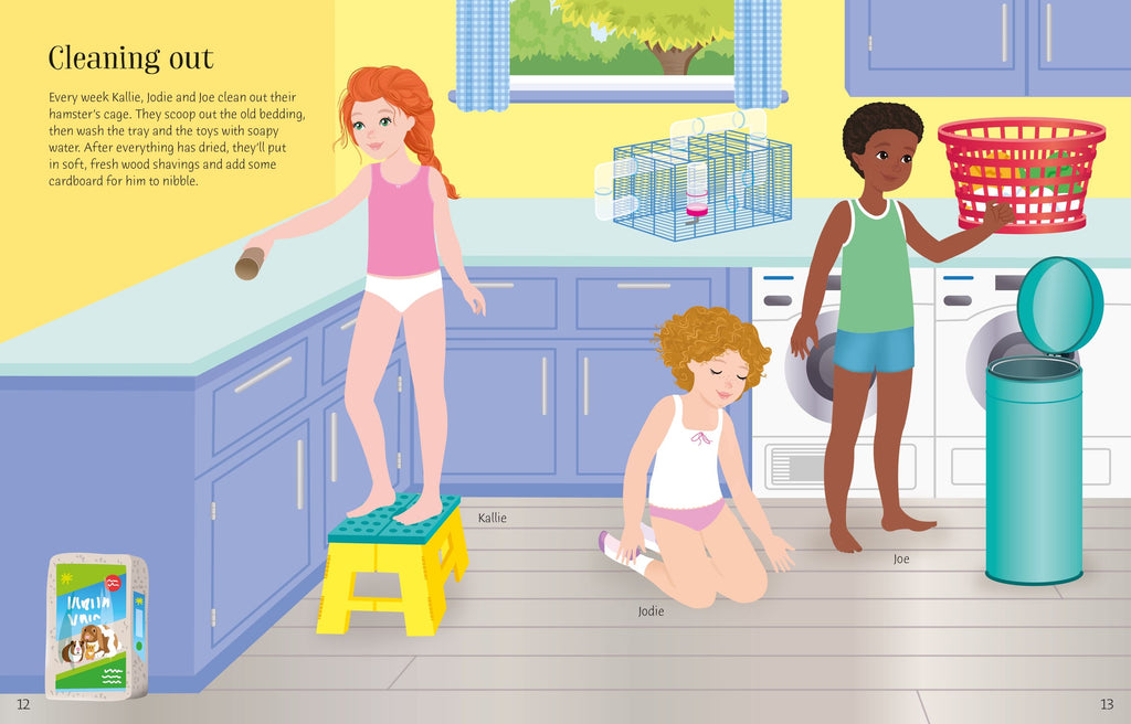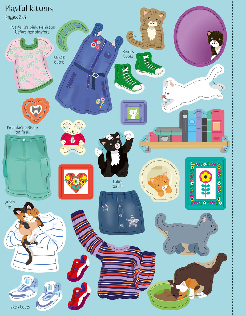 Join the dolls as they look after their pets, as well as interact with those that they dream of having. This fabulous addition to the successful Sticker Dolly Dressing series uses stickers to dress the dolls as they feed and groom their pets, meet their friends with slightly unusual pets, as well as play with puppies, rabbits and kittens.