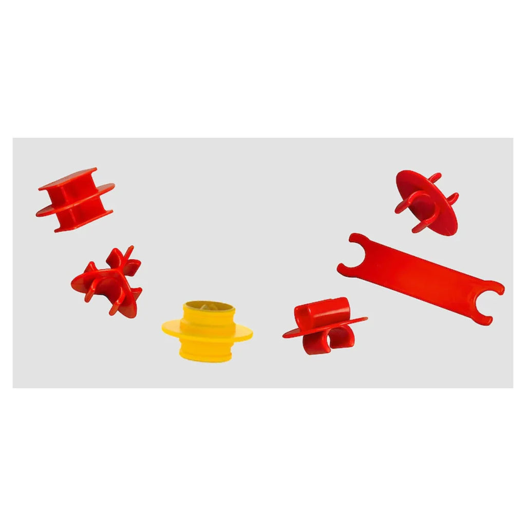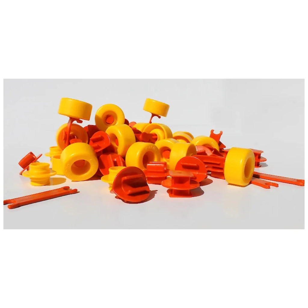 The connector pack by plasticant mobilo® is just what young engineers with big plans need. The supplementary axles, wheels and rotating parts add a lot of motion to all building activities, be it a classy vehicle or an imposing building. The four different connectors and couplings stimulate new projects again and again. Much appreciated in playing groups or kindergarten too.