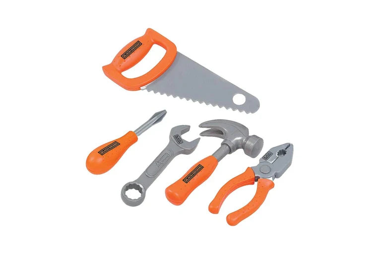 Equip your little builder with the ultimate starter kit: a 5-piece tool set featuring a saw, wrench, screwdriver, hammer, and pliers.