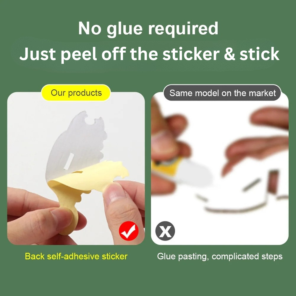 Each kit includes pre-cut cardboard pieces and built-in adhesive tabs. Just pop them out, peel, and press. -