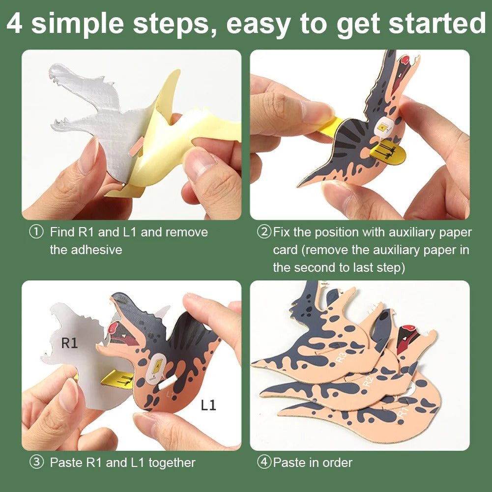 Each kit includes pre-cut cardboard pieces and built-in adhesive tabs. Just pop them out, peel, and press.