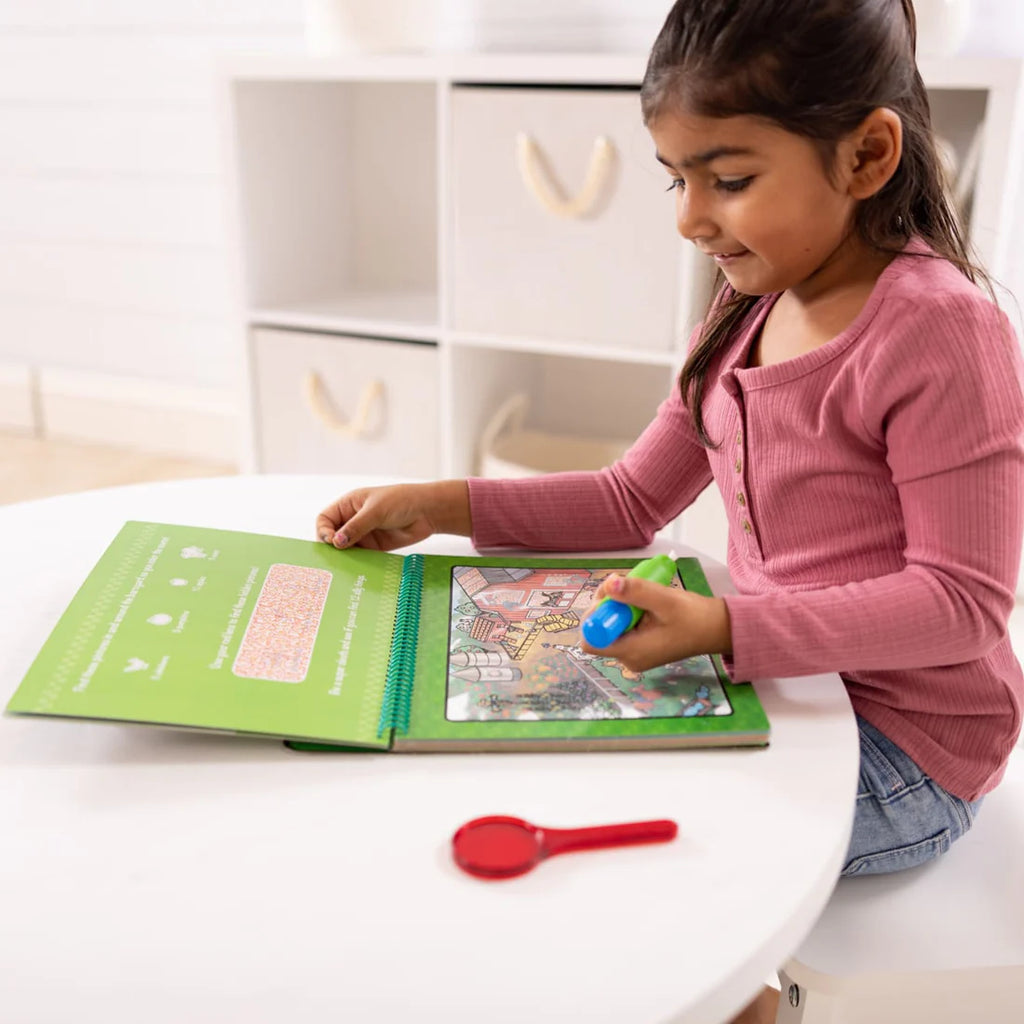 This exciting paint-with-water and seek-and-find activity book includes eight reusable pages, a refillable water pen, and red lens.