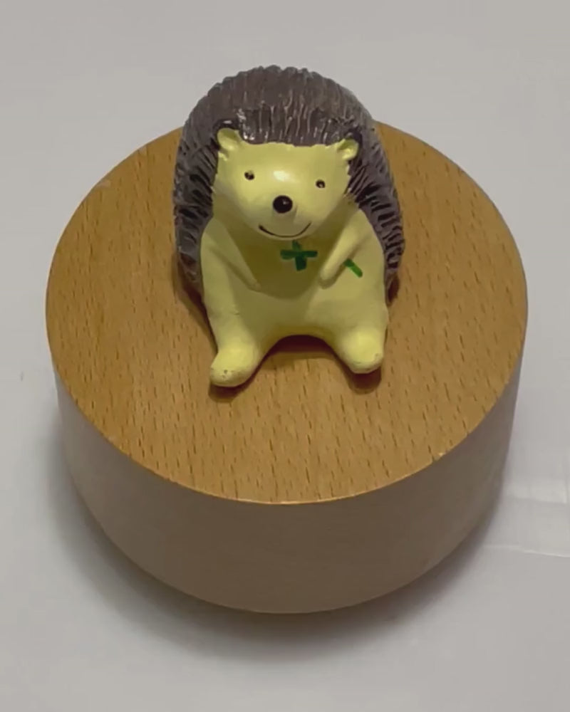 Relive childhood memories with this delightful Rotating Wooden Music Box - Hedgehog