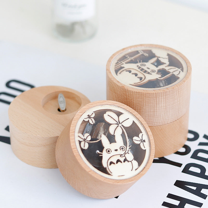 Round Wooden Music Box - Cut Out Totoro Umbrella