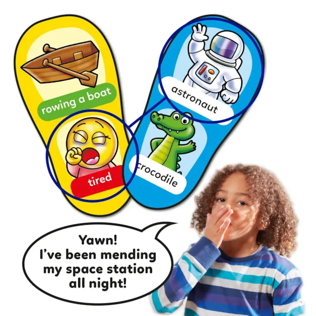 Players take turns to pick two cards, one card that shows an action and another card that shows a character. Once you have your cards it's time to take to the stage and start performing - will you be a 'sneezing chicken', a 'cold astronaut' or even a 'tired penguin'?!