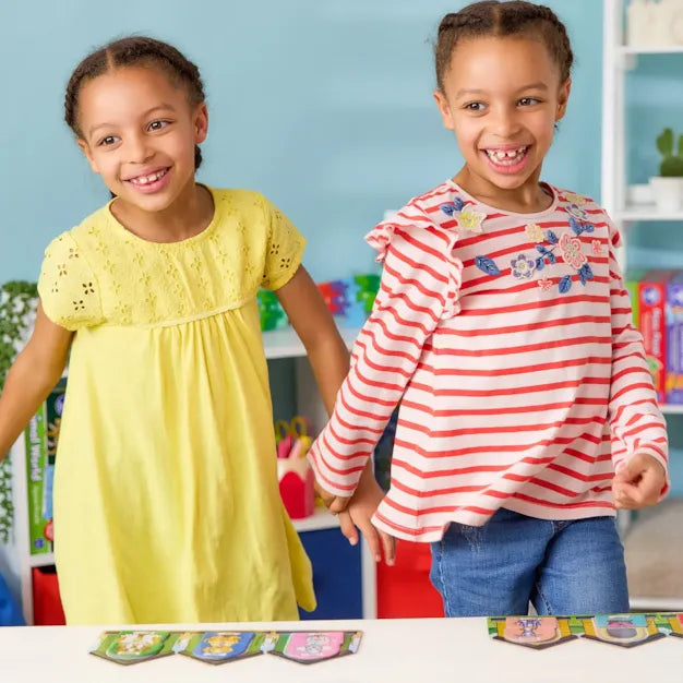 For game 2, turn over the kennel board and try to collect as many complete, matching dogs as possible by taking it in turns to pick a card from the pile of dog heads and bodies and try to match with any of your face up cards on the table! With 13 different adorable pups to complete, this game will have children barking with excitement!
