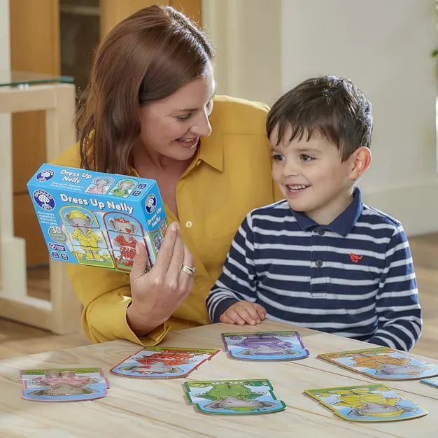 Use the friendly elephants to learn about colours as you dress them in their different outfits! Dress Up Nelly can be played as a fun and simple activity to introduce children to colours, by placing all the cards face up and matching or mis-matching their head, body and legs.