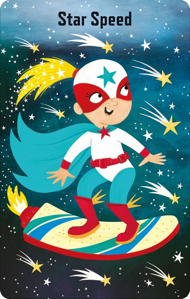 Superhero Snap is a 52-card game packed with quirky, original characters and plenty of playful energy. Children will love racing to spot pairs of unique superheroes like Underwater Boy, Green Fingers, Duplicator, and Shooting Star — each with their own imaginative flair.