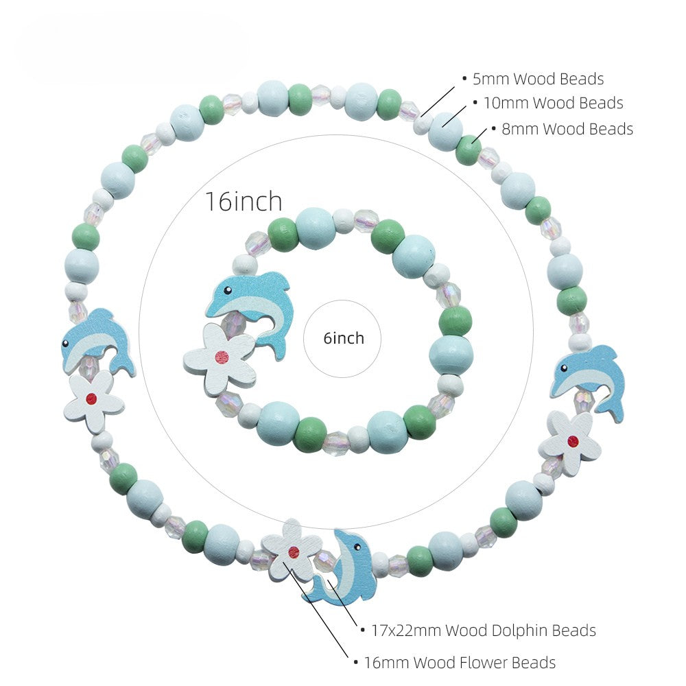 Make a splash with this playful necklace and bracelet duo, where gentle sea vibes meet sunlit blooms. Featuring a graceful blue dolphin pendant paired with crisp white daisy charms, this set evokes the freedom of ocean waves and the simplicity of coastal meadows. With polished plastic pearls and smooth wooden beads, each piece invites you to embrace carefree charm.