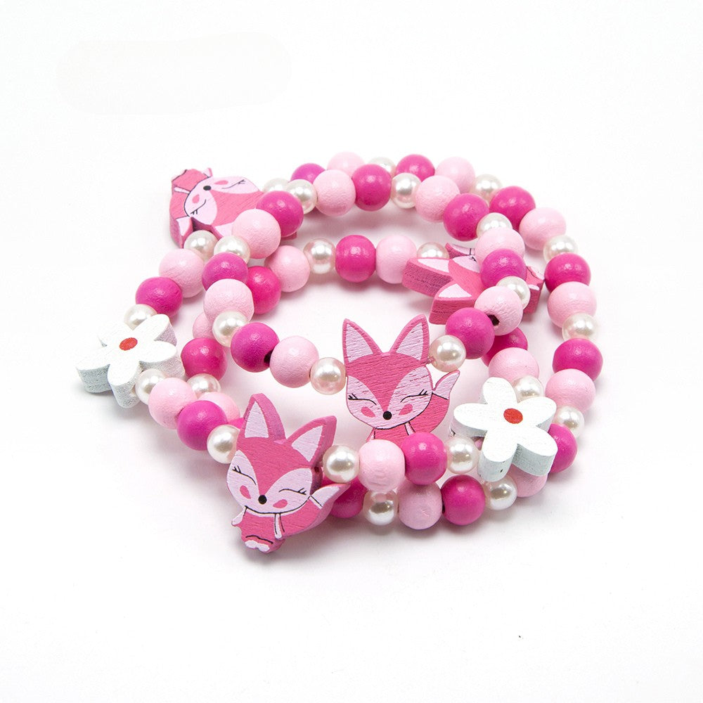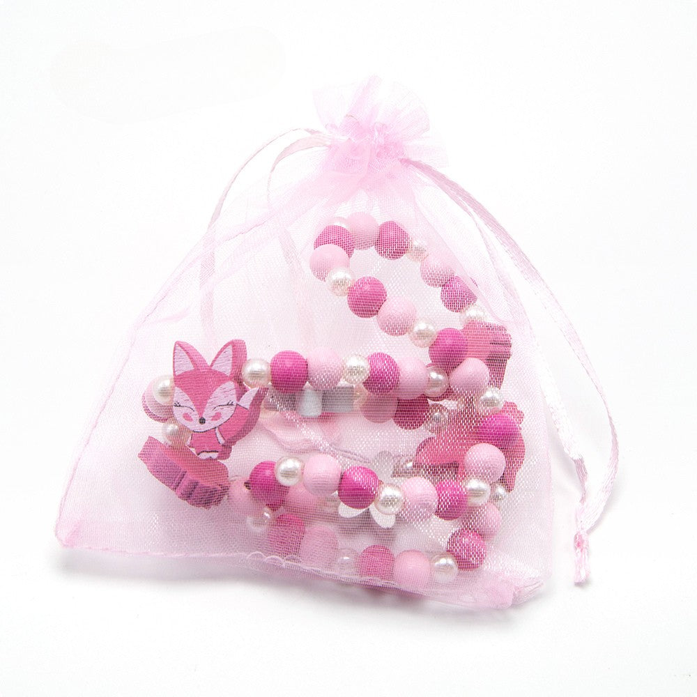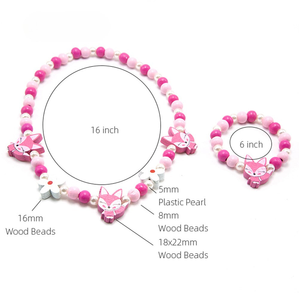 Add a splash of sweetness to any outfit with this delightful jewelry duo, featuring a handcrafted necklace and bracelet made from soft pink wooden beads and shimmering plastic pearls. Adorned with playful pendants—a rosy-cheeked pink fox and a cheerful white daisy—this set is perfect for kids or the young at heart who adore whimsical accessories.