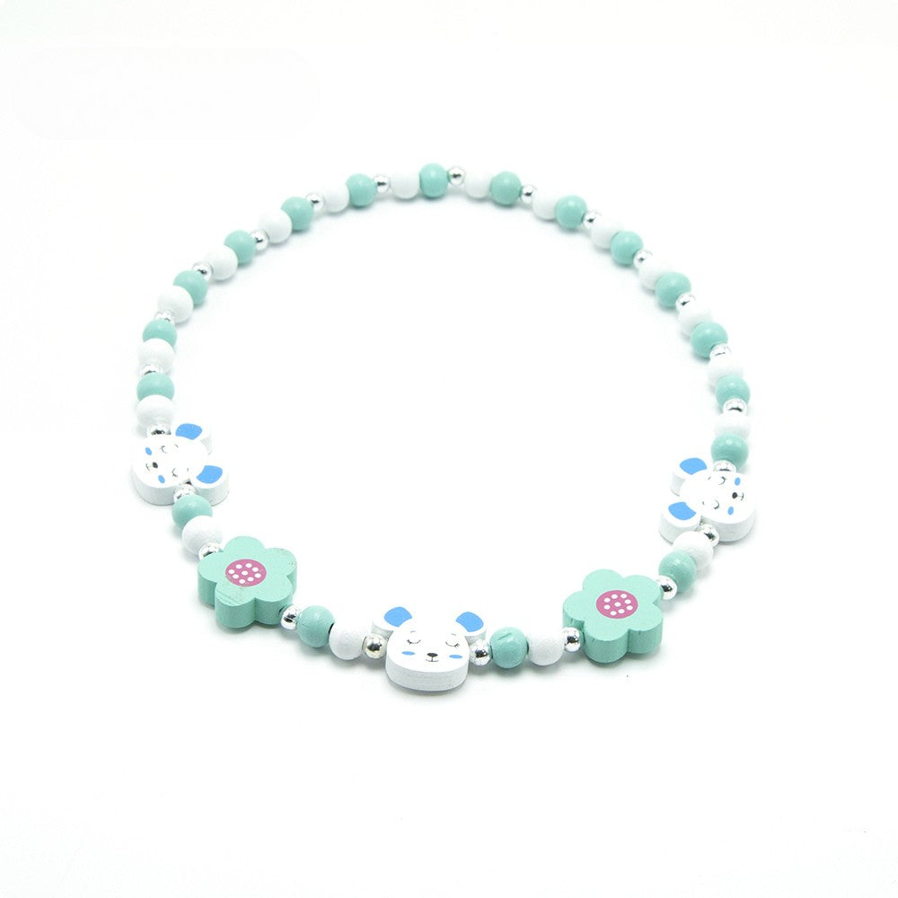 Bring a touch of woodland wonder to your look with this charming necklace and bracelet duo. Featuring an adorable white mouse charm nestled among vivid green flower accents, and finished with sleek silver beads, this set feels like a stroll through a magical forest. Sweet, subtle, and full of character—perfect for little adventurers and nature lovers alike.