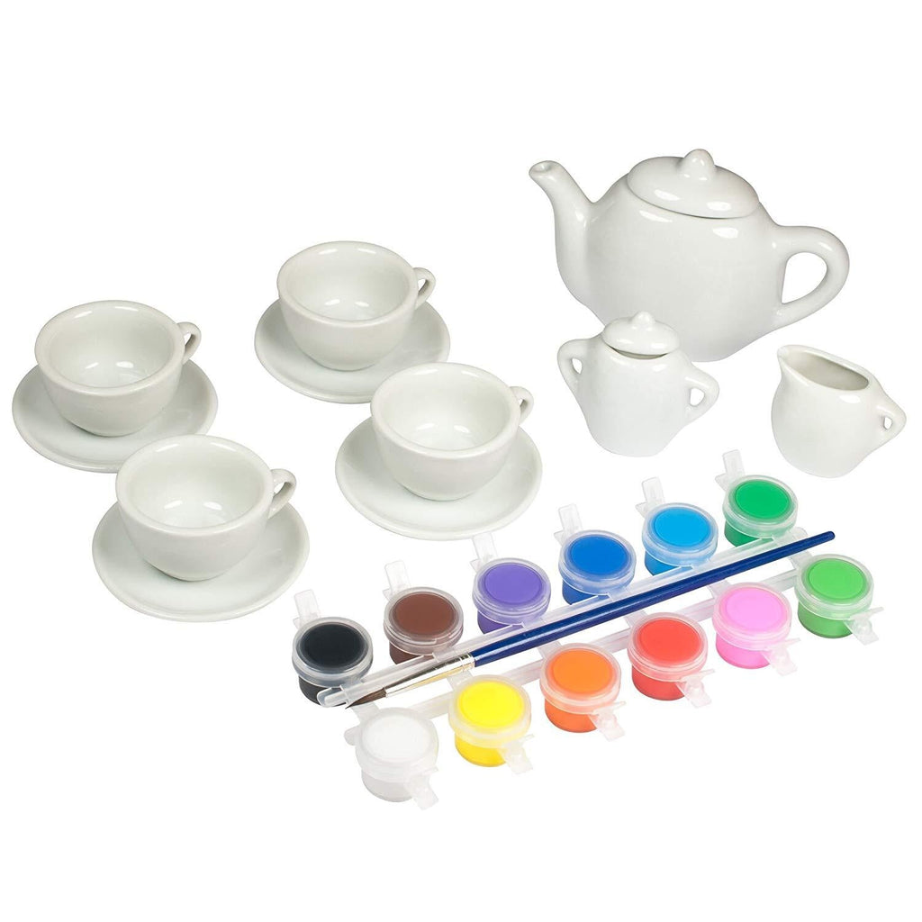- Paint your own miniature ceramic tea set using colourful ceramic paints