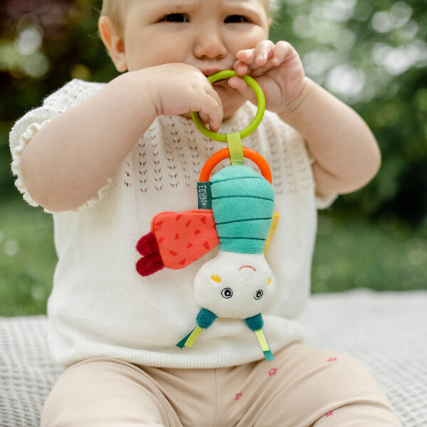 The DoBabyDoo Mini Butterfly Grabber is a soft and engaging toy for babies aged 0+ months, designed to promote sensory development and motor skills.