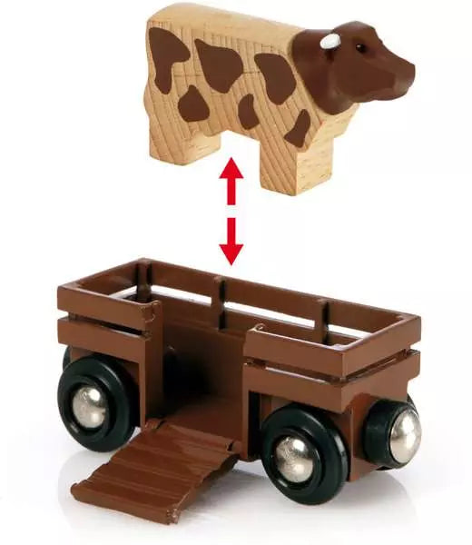 When it’s time for the animals to be moved, place them on the animal wagon with help from the fold out ramp and transport the wagon with the farm train.