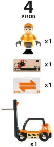 The poseable figure fits perfectly inside the driver´s seat. This item includes 1x Forklift, 1x Playfigure, 1x Cargo, 1x Container and measures 11.2 x 3.3 x 9.6cm