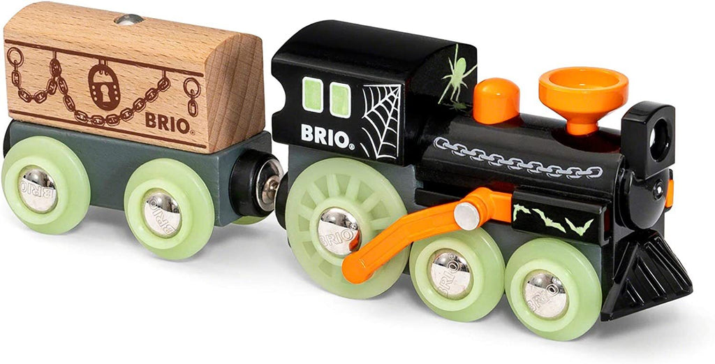 oooOOoooo. Something spooky is creeping along the train tracks. The BRIO Ghost Train comes with glow in the dark details and wooden casket in tow – but what could be inside? Featuring BRIO magnetic connections, this ghostly steam train is ready to connect to other vehicles and wagons and haunt BRIO World.