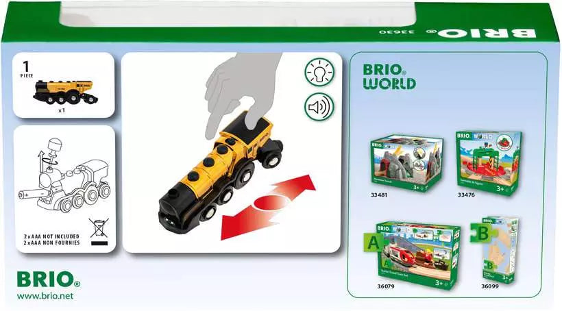 With its shiny gold, metalized paint and classic “choo-choo” sound, the 33630 Mighty Gold Action Locomotive impresses everyone as it flies down the tracks at high speed.