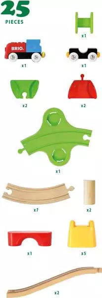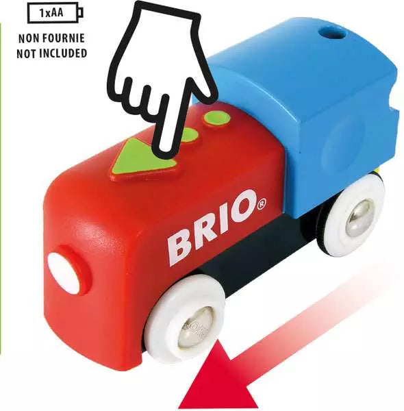 Press the arrow button on top of the engine and the train starts to move by itself. The wagon with the spinning wheel gives an extra bit of fun to this brilliant 'My First' set.