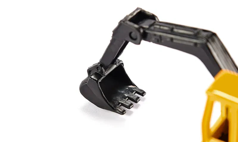 The crawler excavator made of metal and plastic parts is a replica of the real vehicle. The movable parts allow to transport very small objects.