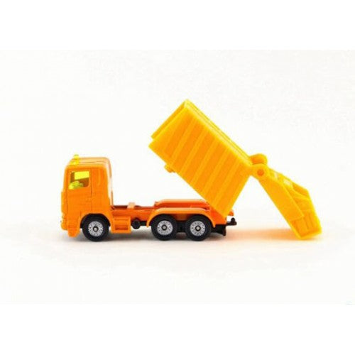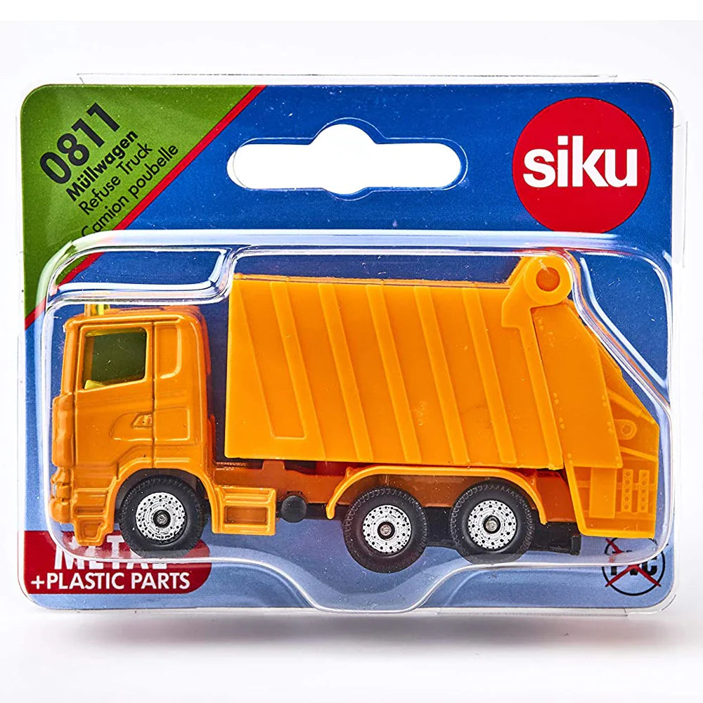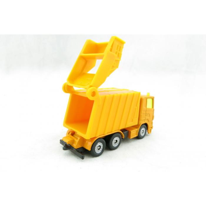Garbage truck made of metal and plastic parts is a reflection of the real vehicle.