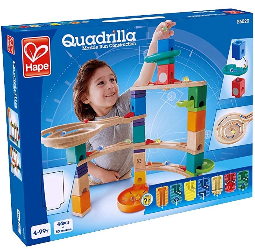 Get closer to the Quadrilla action with three gutters that make your marbles race around the outside of the coloured blocks on their way to the bottom.